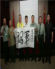毛主席的秘书、保健医生、名誉院长王鹤滨亲笔题写毛院书画院院名,并和院长邱锋合影